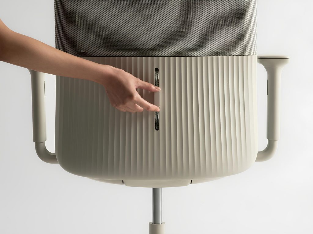 Кресло также создано с учётом устойчивого подхода: рама и основание выполнены из переработанного термополимера, конструкция сборки облегчена, а использованные материалы поддаются переработке.