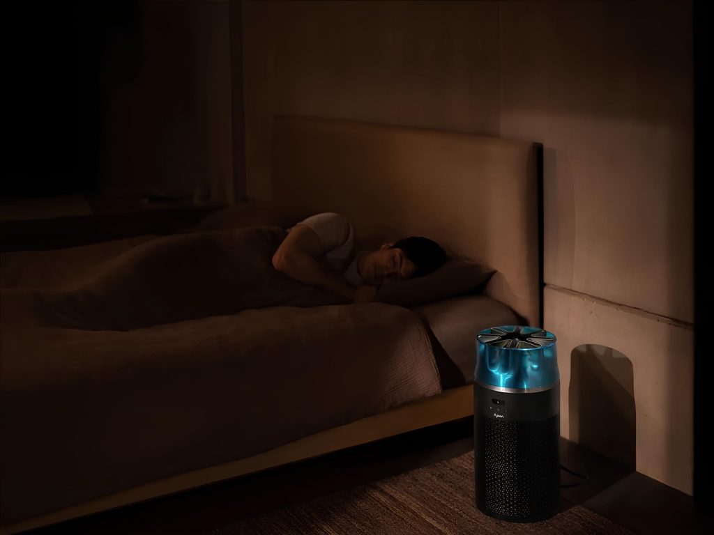 Вместо характерного круглого кольца здесь используется звёздчатая насадка, больше напоминающая элемент авиационного оборудования. Такая форма выбрана не ради визуального эффекта: она позволяет направлять поток очищенного воздуха с высокой скоростью и при этом значительно снижать уровень шума. В ночном режиме устройство работает всего на 24 дБ — это тише, чем в библиотеке и почти на уровне шёпота.