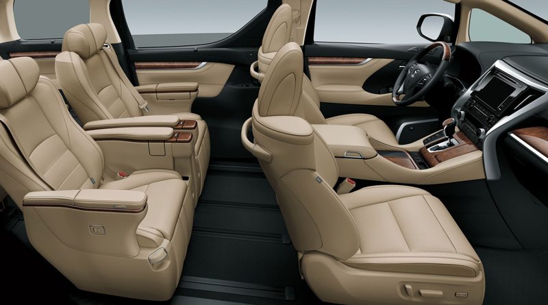 Executive Lounge — новая комплектация для Alphard. В этой версии более широкие задние кресла (+100 миллиметров), подставки для ног с электроприводом, подогрев и вентиляция сидений, складывающиеся столики, отделка элементов интерьера деревом, мультимедийная система для задних пассажиров с 12,1-дюймовым экраном, аудиокомплекс JBL с 17 динамиками и 12-канальным усилителем.