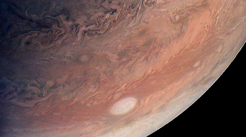 На сайте NASA опубликовано новое изображение Юпитера, полученное с борта космического аппарата «Юнона» (Juno).