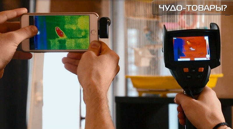 Чудо товар номер 3 — портативный тепловизор, который подключается к смартфону и определяет температуру любых поверхностей. Цена 20 000 рублей — сравнительно недорого в сравнении с обычными тепловизорами. Производитель обещает, что прибор поможет выявить утечки тепла и холода, обнаружит проблемы с электропроводкой, места нагрева техники и даже окажет поддержку охотникам, помогая найти дичь!