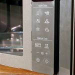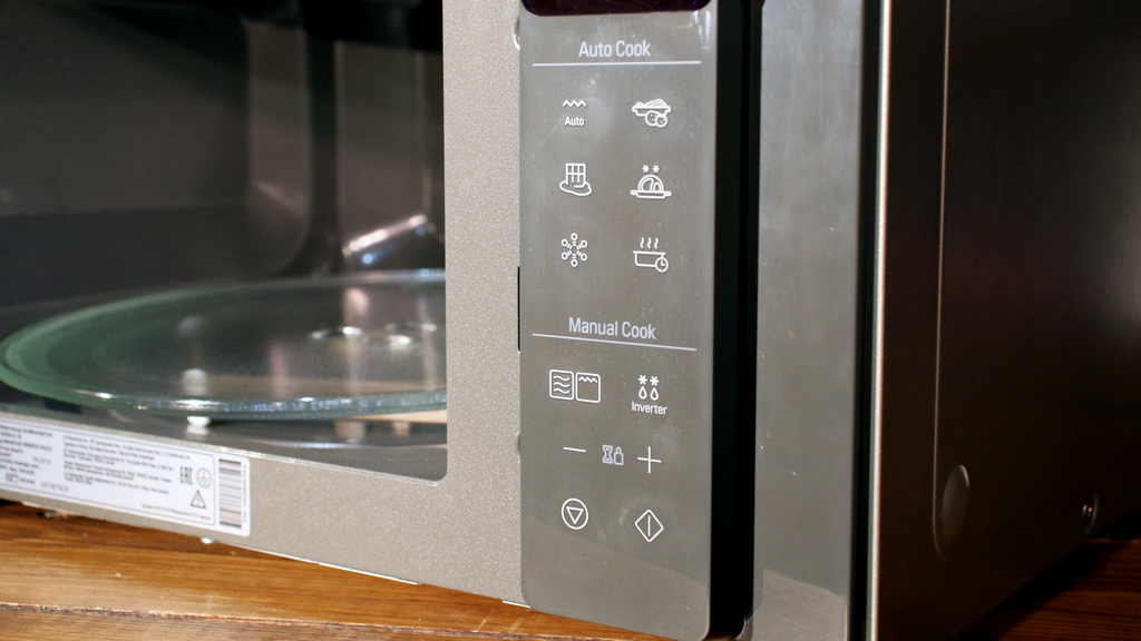 Теперь про удобство использования. Закрытая панель управления — спорное, на наш взгляд, решение. Дело в том, что быстро запустить режим микроволн можно коснувшись сенсорной кнопки на дверце, а вот все действия с автопрограммами осуществляются только с основной панели управления: нужно открыть дверцу, сделать настройки, закрыть дверцу и нажать на старт. Не глобальная проблема, но минус 0,5 балла за «юзабилити».