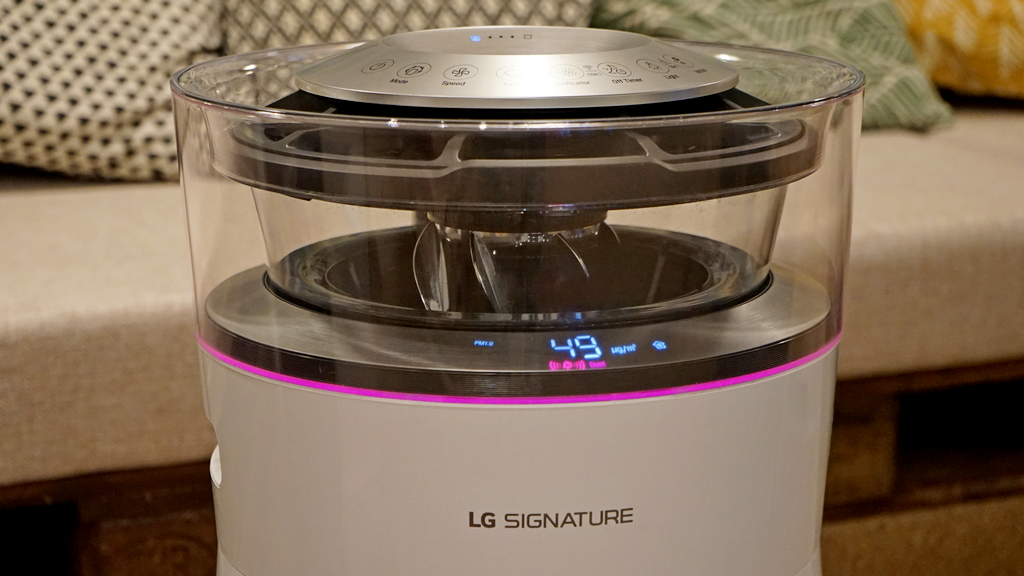 В LG SIGNATURE используется традиционная система увлажнения воздуха — вода в баке обеззараживается ультрафиолетом и смачивает фильтр, через который и проходит воздух. Захватив с собой определенное количество влаги (в зависимости от температуры воздуха), он, чистый и увлажненный, возвращается обратно в помещение.