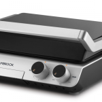 Симпатичный внешне гриль, который тоже имеет таймер, но уже с отключением нагрева. Это круто, но, например, в случае со стейком — не очень-то нужно. Даже выключенный гриль некоторое время остается горячим и мясо продолжает готовиться — убирайте его с гриля сразу, как только истечет время приготовления. Однако для многих других продуктов — удобное решение.