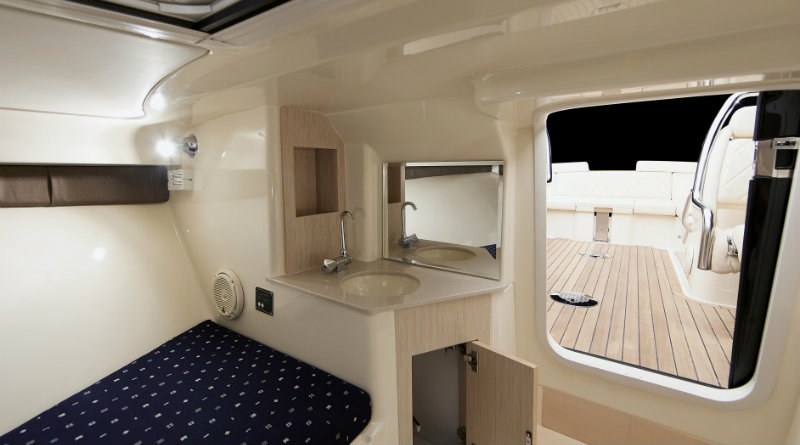 Максимальная мощность этого катера составляет 440 лошадиных сил. Удобств по сравнению с Cobalt 24SD больше — есть каюта с двуспальной кроватью, холодильник, биотуалет с раковиной и аудиосистема JL Audio.