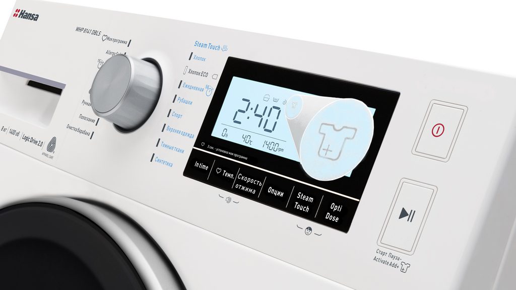 Стиральная машина Hansa WHP8141DBLS: с автодозировкой моющего средства и выбором степени загрязнения вещей