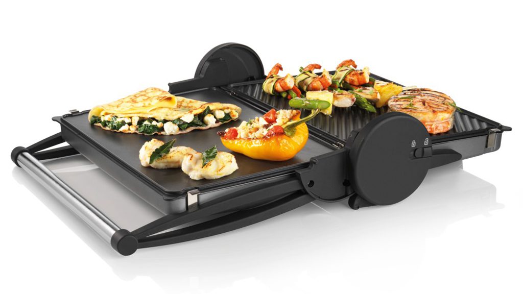 Еще новинка года — электрогриль Bosch TFB4431V. В нем есть всё, что требуется от современного гриля. Формат (двухсторонний контактный) позволяет готовить самые разные продукты, в том числе говяжьи стейки. Высокая мощность — 2 000 Вт — обеспечивает быструю и качественную прожарку.