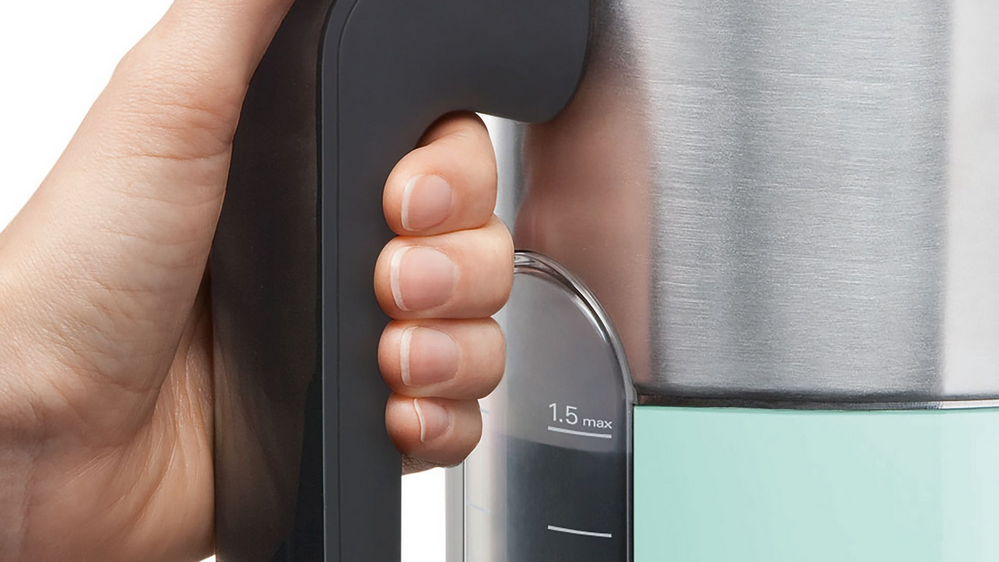 У чайников Bosch Styline корпус из пластика с элементами из нержавейки. Смотрится очень круто и, в целом, минималистично и технологично. Ручка с прорезиненной вставкой — чтобы чайник надежно фиксировался в руке. С обеих сторон от нее шкала наполненности. Крышка с кнопкой-фисксатором — нажал и открылась. Есть съемный фильтр в носике — чтобы известковые отложения (накипь) не попадали в чашку.
