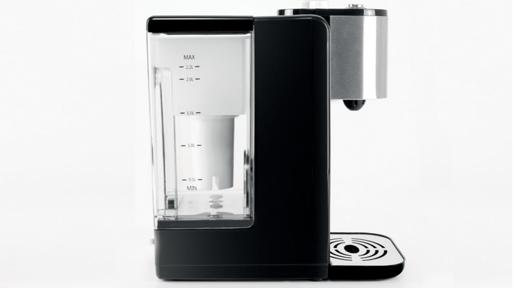 Следующий участник ТОП-списка чайников 2017 года отличается от классики тем, что нагревает не сразу весь объем воды (здесь это до 2,2 л), а ровно столько, сколько нужно на чашку чая. Например, 200, 300 мл или 500. Сколько хотите — горячая вода выбранной температуры будет наливаться пока вы нажимаете кнопку сверху на корпусе. Благодаря мощному проточному нагревателю. Такой подход — нагрев именно нужного объема воды — экономит время и электричество.