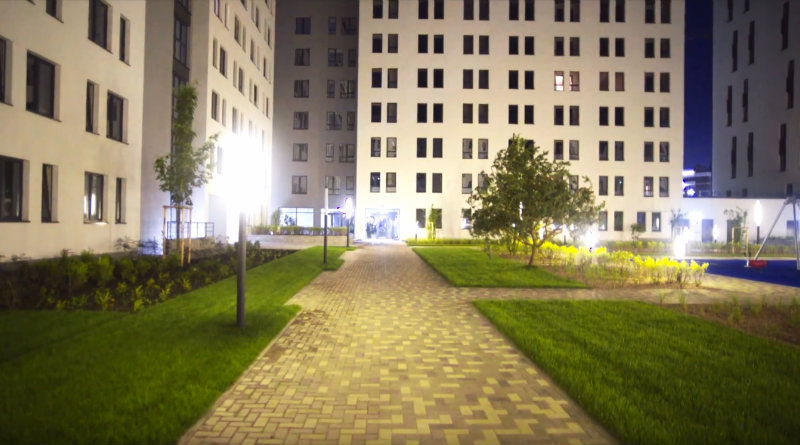 В кварталах «Брусники» в «Солнечном» тоже есть интересные фишки. Например, тут используется трехуровневое освещение — обычные фонари находятся на уровне глаз, высокие фонари подсвечивают деревья, а также есть фонари в земле. Вечером тут очень красиво!