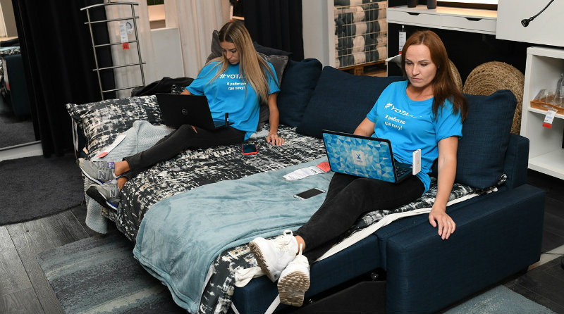 Сегодня мы освоили новый формат и предложили сотрудникам поработать прямо в торговом зале магазина. Мы рады, что коллеги из ИКЕА разделяют наш стиль и открыты для экспериментов. Мы убедились, что можно разместиться в любом удобном интерьере экспозиции и тебя никто не прогонит», – комментирует генеральный директор Yota Владимир Добрынин.