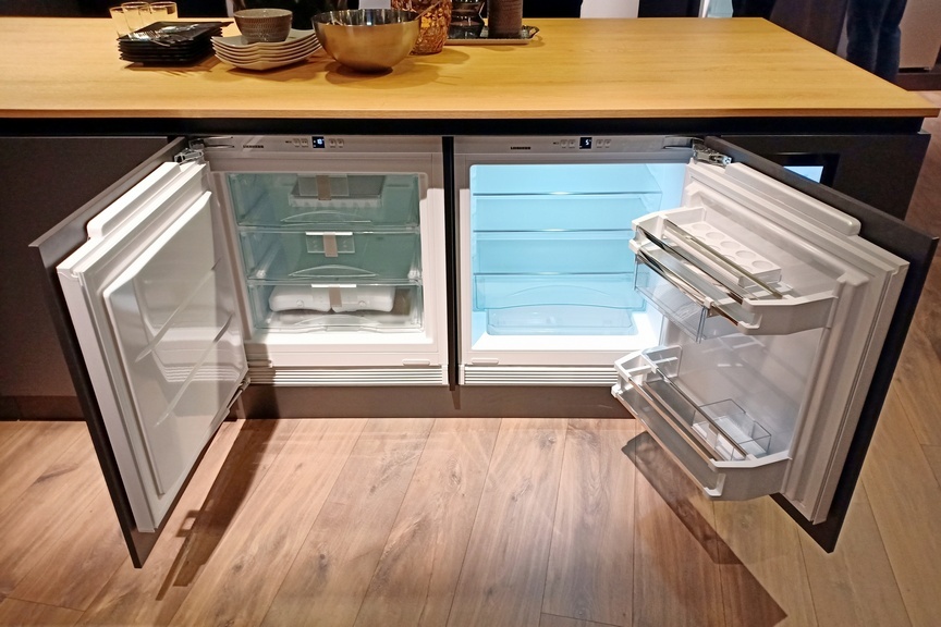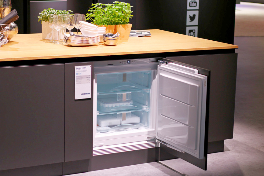 До недавнего времени небольшие морозилки, которые можно встраивать под столешницу, нужно было вручную размораживать. Но теперь есть LIEBHERR SUIGN 1554 с технологией No Frost — с авторазмораживанием. Ее можно встроить под столешницу 88 см, а рядом, например, встроить холодильное отделение такого же формата.