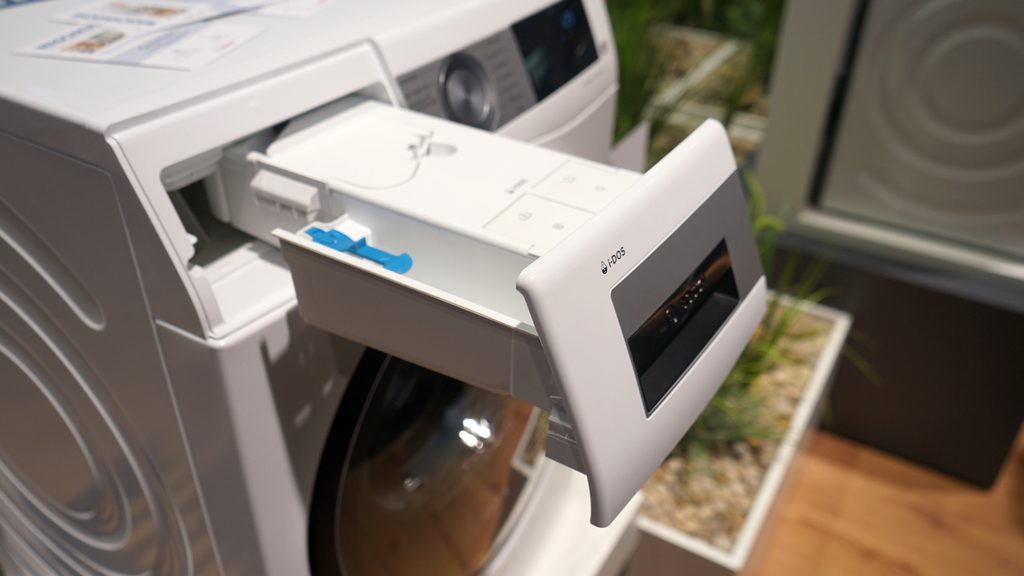 Одна из главных звезд стенда BOSCH на IFA 2018 — стирально-сушильная машина BOSCH WD4UH590OE. Она будет продаваться в России, с ценой производитель пока определяется. В ней есть автодозировка жидкого моющего средства. Это удобно: налил и забыл об этом примерно на 20 стирок. Кстати, с концентрированное средство тоже подходит. Машина стандартных размеров (глубина — 60 см), вмещает до 10 кг при стирке и до 6 кг вещей при сушке.