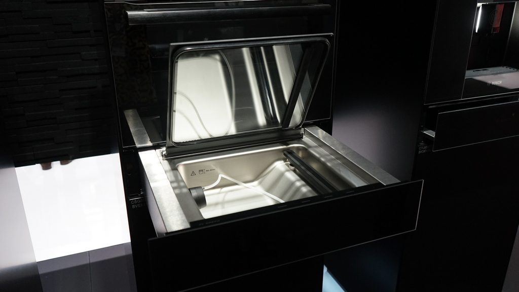 Мировая премьера 2018 года — встраиваемая техника BOSCH accent|line. Выполненные в черном цвете, с глянцевыми элементами и с фрагментами из черненной нержавеющей стали, приборы из новой коллекции выглядят дорого и стильно. Их, кстати, в серию accent|line входит много: от многофункциональных духовых шкафов, до встраиваемых кофемашин, вакууматоров, варочных поверхностей, вытяжек и другой полезной кухонной техники. Пока вопрос о появлении коллекции в российских магазинах в стадии обсуждения.