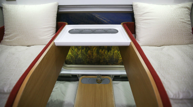 Места оборудованы комфортными диванами с подголовниками и индивидуальным освещением. Самое классное — появились индивидуальные розетки 220 V и USB для подзарядки гаджетов в пути.