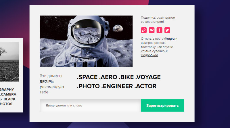 Крупнейший хостинг-провайдер и регистратор доменов в России REG.RU создал на базе искусственного интеллекта сервис REG.Pic. Он позволяет загрузить фото и за несколько секунд получить рекомендацию по выбору тематических доменных зон для сайта. Сервис доступен по адресу pic.reg.ru.