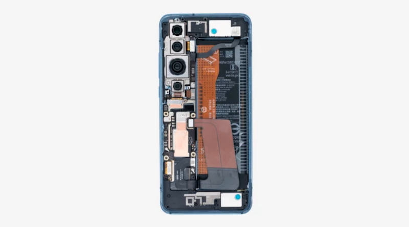 В начале видео удаляется задняя панель устройства, затем убирается клей, связывающий заднюю крышку с корпусом, в верхней и нижней части устройства можно наблюдать две больших резинки. Они в первую очередь служат защите от падений. Кроме того, большая часть внутренней поверхности крышки покрыта теплопроводящим графитом, в части, где находится материнская плата. Так же видны катушки NFC и беспроводной зарядки.