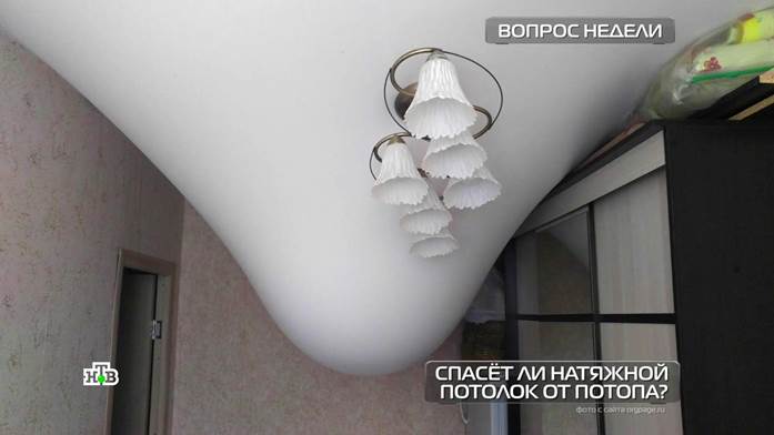 Впечатляет? А если это ваши соседи сверху, и у них что-то пойдёт не так? Люди, которые продают и устанавливают натяжные потолки, уверяют, что эта интерьерная технология не только добавляет красоты, но и способна спасать от потопа! Наш зритель Михаил из Подмосковья в способностях полимерного полотна убедился лично — причём дважды.