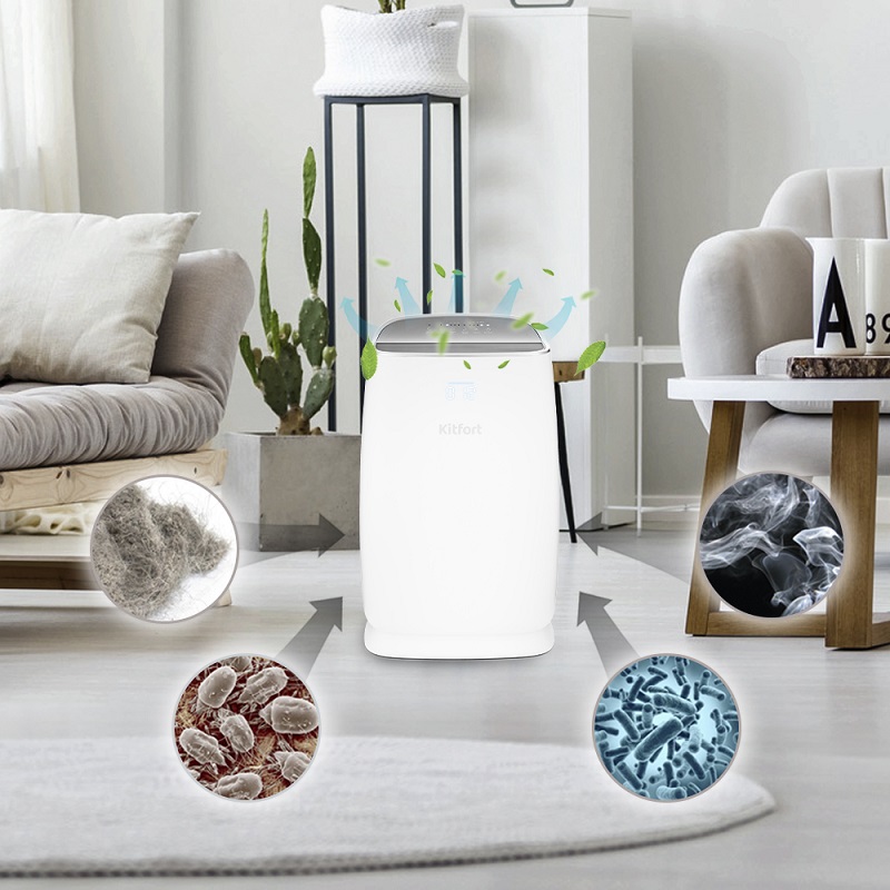 Хорошо, если у вас есть 30 000-50 000 рублей на покупку очистителя воздуха. А что делать обычному человеку, которому жалко тратить такие деньги на этот девайс? Может ли он получить что-то достойное за не очень большие деньги? Мы нашли доступную достаточно широкому кругу пользователей модель от Kitfort, рассчитанную на площадь до 20 м² (производительность по очистке — до 170 м³/ч) — она стоит 7490 рублей.