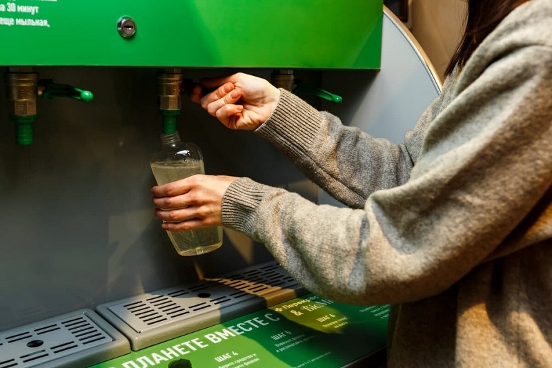 Но сначала о других интересных фишках. Во-первых, ребята разработали целую систему помощи при выборе вина. Туда даже зашит винный рейтинг популярной программы Vivino (есть и другие винные «настройки» и «опции»). Просто приходите в винный отдел и с помощью «электронного сомелье» легко выбираете идеальное вино — и это без получасовых раздумий, разглядываний полок и мук выбора. Во-вторых, в некоторых «Перекрестках» можно купить моющие средства в свою тару (пока это запущено в формате эксперимента) — приходишь со своей бутылочкой и наливаешь хоть 140 мл, хоть 300 мл, хоть литр.