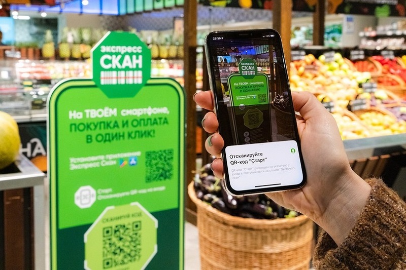 Еще одна интересная вещь для тех, кто не хочет ни с кем общаться, хочет все контролировать сам и не сталкиваться ни с кем из сотрудников — технология «Экспресс скан», позволяющая совершать покупки без кассиров и касс. Нужно скачать мобильное приложение «Экспресс скан» и с его помощью отсканировать QR-код со стенда на входе в магазин (такие стенды стоят во многих «Перекрестках» и «Пятерочках» Москвы и Подмосковья, а также в «Перекрестках» Санкт-Петербурга, Ленобласти и Твери) — так приложение поймет, в каком именно магазине вы находитесь. Дальше идете и набираете товар, который вам нужен, и самостоятельно сканируете его штрих-код с помощью того же приложения.