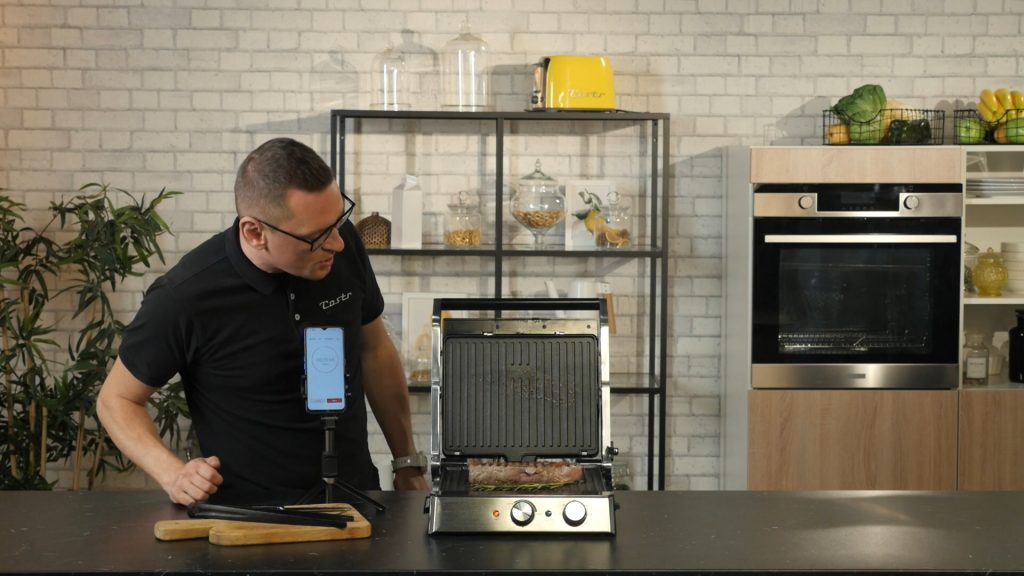 Тут все довольно просто. Гаджет небольшого размера, и у него тоже есть съемные панели с антипригарным покрытием, которые можно мыть в посудомойке. А вот нагреватель тут классический — он не интегрирован в поверхность. Зато гриль раскладывается и может служить барбекю-площадкой.