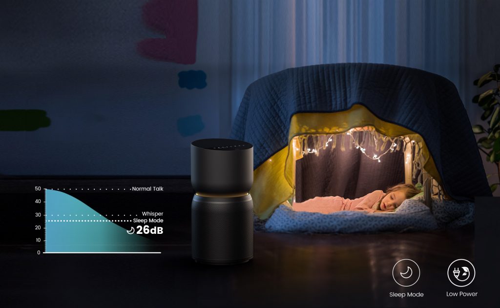 Также Breeva А3 имеет дополнительный барьер TCL BreevaShield™, отвечающий за очищение воздуха от вирусов и бактерий с помощью безвредного UV-C излучения. А его мягкая подсветка, регулируемая в приложении, создаст уютную атмосферу и не будет отвлекать ото сна даже в очень темной комнате.