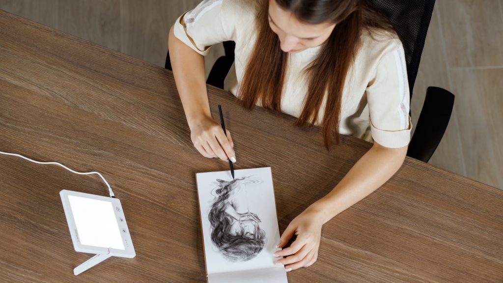 Гаджет будет идеальным спутником в поездках и командировках. В комплекте у него есть чехол для хранения и транспортировки. Плюс он компактный (размеры — 328 х 318 х 2 мм), так что много места в чемодане или сумке не займет, да и весит очень мало — всего 400 гр.