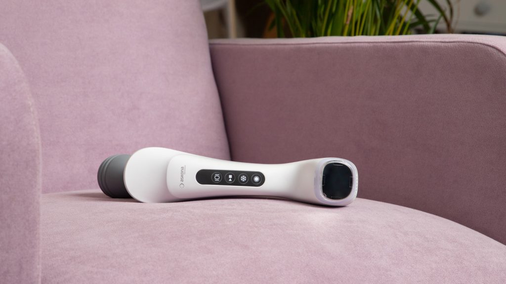Многофункциональный беспроводной массажер Askona Performance Stress Free разработан специально для ухода за лицом. Он получил три режима работы: вибрационный массаж (время воздействия — 10 минут) позволяет снять напряжение мышц, стимулировать кровообращение и проработать овал лица; освежающий массаж (3 минуты) отвечает за расслабление мышц, уменьшает раздражения на коже, повышает ее упругость и эластичность; расслабляющий режим (3 минуты) поможет в борьбе с «гусиными лапками», подтянет кожу лица и шеи и вернет четкость овалу лица. У каждого из этих режимов есть три уровня интенсивности.
