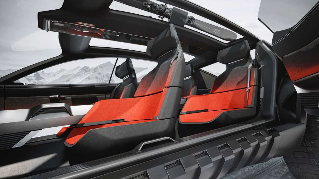 В крышу встроены выдвижные крепления для перевозки лыж, а задняя часть способна превращаться в погрузочную площадку. На ней можно разместить велосипеды или другой габаритный груз.