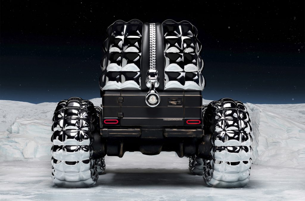 Компания Mercedes-Benz в рамках Недели моды в Лондоне показала уникальный концепт-кар Project Mondo G, вдохновленный пуховиками итальянского бренда Moncler. Автомобиль оснащен огромными мягкими колесами, имитирующими дутые куртки, и молнией на крыше.