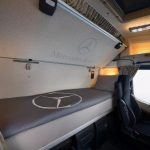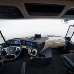Два электромотора в пике выдают 805 л.с., а мощность зарядки составляет 400 кВт — с 20 до 80% за полчаса. Вместо зеркал установлены камеры, картинка с которых выводится на большие дисплеи в салоне. Также в кабине есть спальное место, а опционально можно будет заказать холодильник.