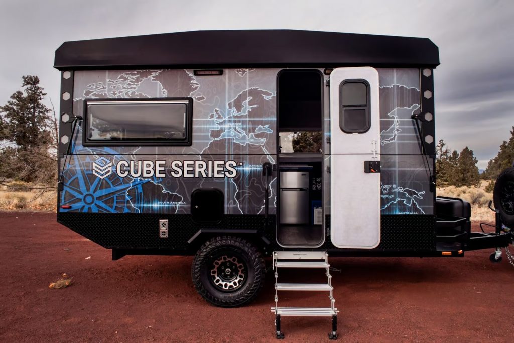 При буксировке на трассе Cube выглядит как обычный прицеп высотой 1,9 метра и длиной чуть больше 5,3 метров, а в месте для кемпинга он способен превращаться в загородную хижину на четырех человек. Процесс трансформации происходит за счет подъема крыши с помощью приводов, работающих от 12-вольтного мотора.