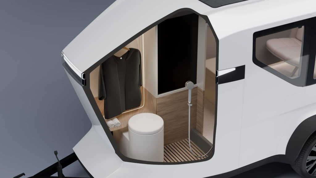 В фургоне используется подъёмная площадка, создающая потайное дно для перевозки снаряжения. Кухонный блок оснащён выдвижной раковиной и зоной приготовления пищи. Санузел скрыт за дверью-холодильником. Как заявляет компания-производитель, при желании можно увеличить жилую площадь до 20 м² за счет демонтажа боковых или задней стенок.