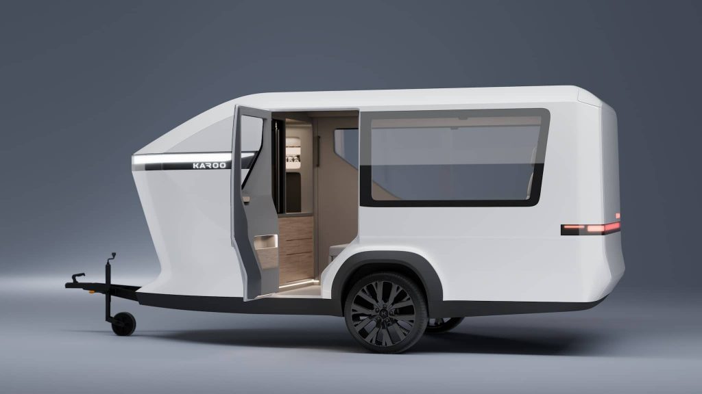 Финская компания Karoo представила прицепной трйлер Adventure. В нем могут разместиться 4 человека. Длина фургона составляет около 5 м, а ширина — более 2 м. В ночное время кровати размещаются в 2 яруса, а в дневное могут складываться в сидячие места или вовсе убираться.