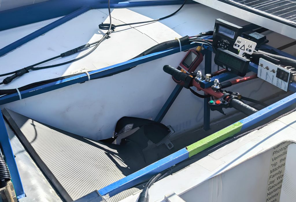 Водитель управляет автомобилем в лежачем положении при помощи педалей акселератора, переднего тормоза и пары ручек на руле для тормозов от горного велосипеда на задних колёсах. У машины гигантский радиус поворота, поэтому при прохождении крутых поворотов автомобиль переставляли вручную. Его вес — 254 кг.