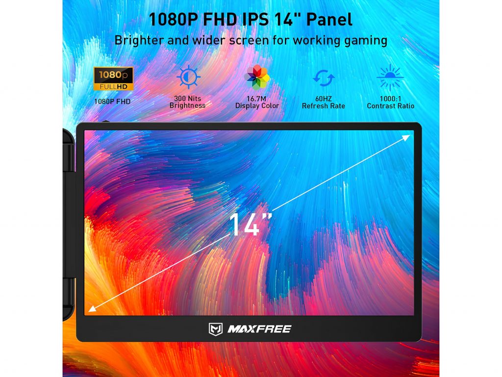 Устройство поддерживает разрешение 1920x1080P с яркостью 300 нит и контрастностью 1:1000, обеспечивая чёткое и яркое изображение. Оно работает в различных режимах: расширенный, зеркальный и второй экран, что позволяет эффективно выполнять несколько задач одновременно.