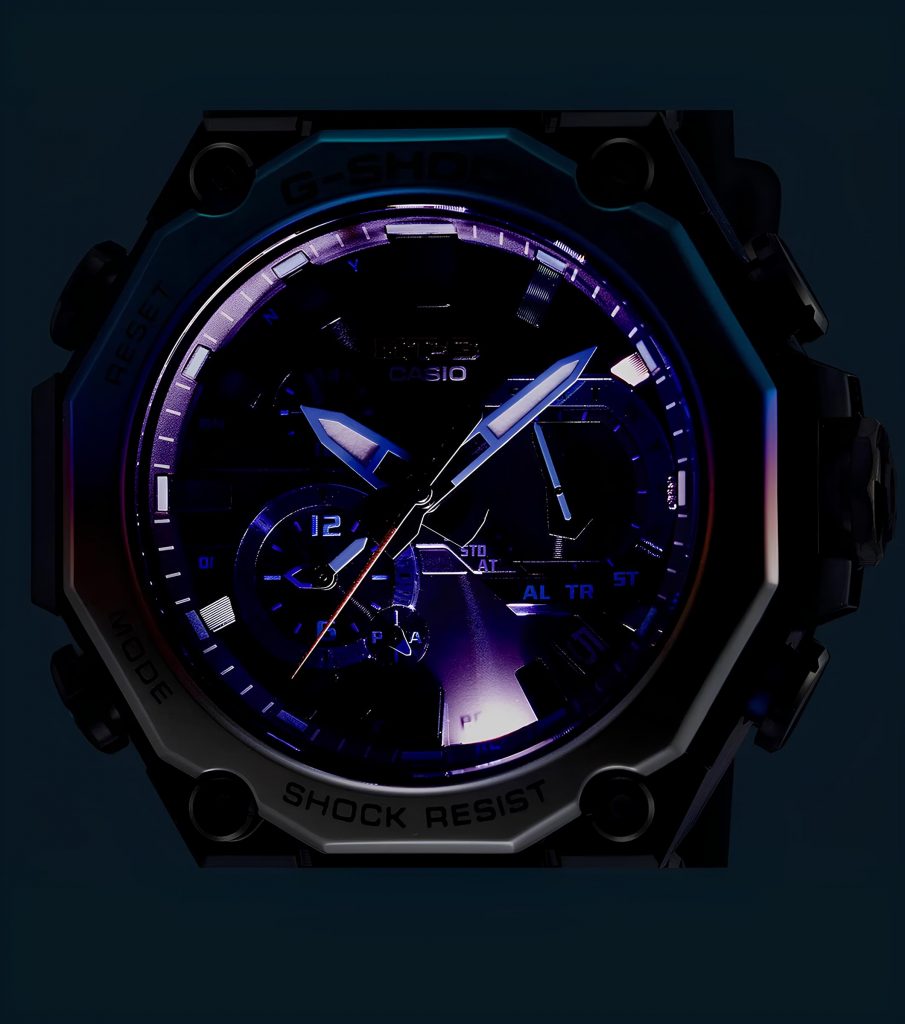 Модель MTG-B2000YST-1AER оснащена сапфировым стеклом с антибликовым покрытием, устойчивым к царапинам, и обладает водонепроницаемостью до 200 м. В числе функциональных возможностей – индикатор уровня заряда батареи, таймер и 24-часовой секундомер. Часы могут заряжаться от солнечной энергии и подключаться к смартфону по Bluetooth.