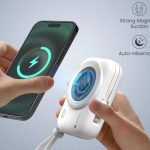 Устройство оснащено магнитным креплением MagSafe и 2 встроенными кабелями для быстрой зарядки различных гаджетов. С ёмкостью 10 000 мАч, пауэрбанк поддерживает проводную зарядку через кабели USB Type-C (до 22,5 Вт) и Lightning, а также беспроводную зарядку мощностью до 15 Вт с использованием Qi-совместимой катушки. Устройство имеет компактный ЖК-дисплей для отображения оставшегося заряда и использует двухсторонний порт Type-C для подзарядки.
