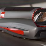 Его аэродинамический кузов изготовлен из 700 элементов авиационного композита. Он выделяется своей изогнутой формой и большой площадью остекления. У автобуса закрытые колёса и отделка Satin Matte с яркими красными акцентами.