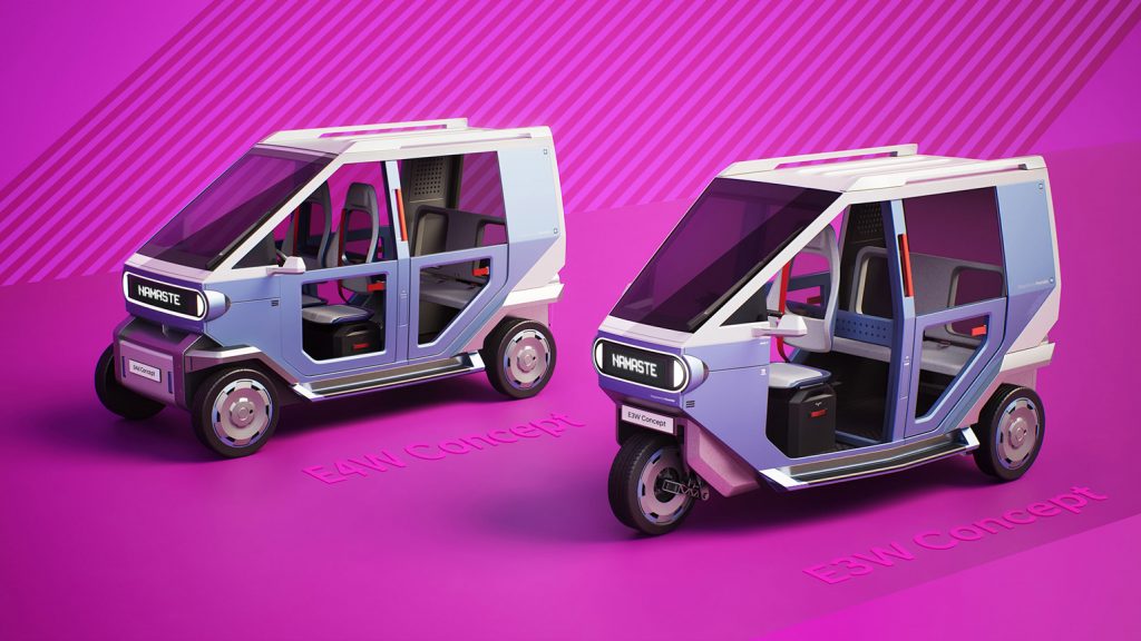Hyundai, в сотрудничестве с компанией TVS, анонсировала 2 инновационных концепта электрического транспорта, специально разработанных для удобного передвижения по загруженным улицам Индии. Эти модели получили названия E3W и E4W.