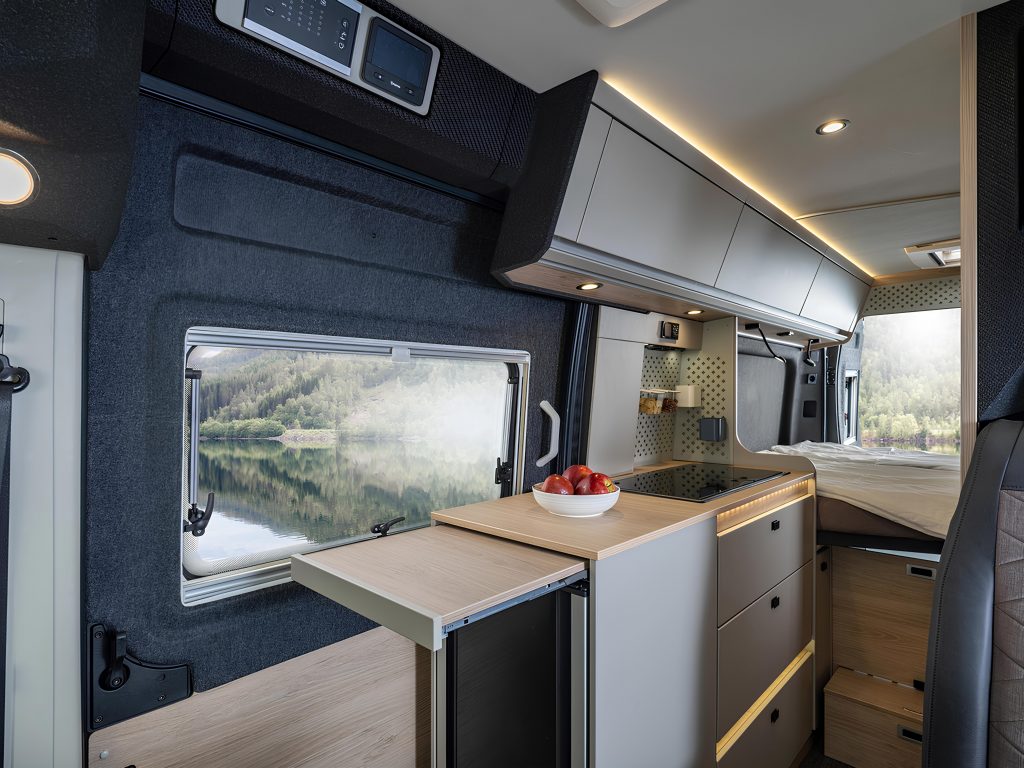 Среди других удобств — выдвижная кухонная столешница, комфортная система сна с дисковыми пружинами, панорамное окно и «умная» система освещения. Все модели рассчитаны на 4 человек и предлагают 3–4 спальных места в зависимости от конфигурации.