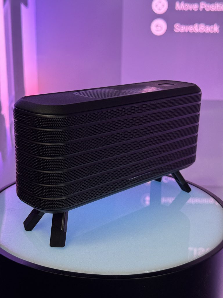 Она оснащена 4K лазерной проекцией и системой объёмного звука 7.1.4., поддерживает Dolby Atmos, выдаёт до 3 500 ANSI люмен яркости и цветовой охват 110% Rec.2020, а также снабжена выдвижными динамиками и батареей на 40 часов работы.