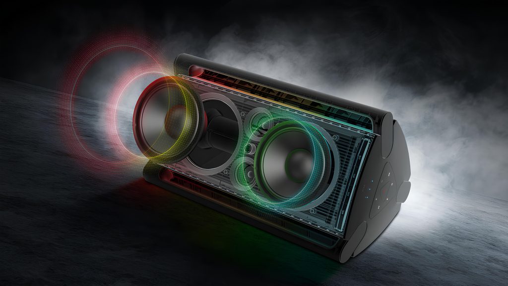 Система оснащена двумя сабвуферами по 8 дюймов и общей мощностью 340 Вт, что позволяет воспроизводить глубокие басы и насыщенный звук. Технология Bass Boost усиливает низкие частоты, а алгоритмы обработки подчёркивают вокал и создают более выразительное звучание. Частотный диапазон начинается с 38 Гц, поэтому музыку можно буквально ощущать физически.