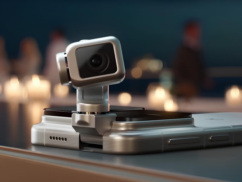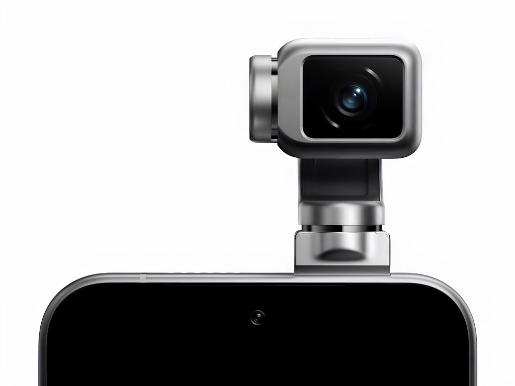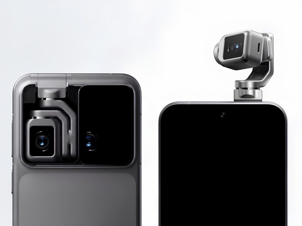 Камера встроена в блок на задней панели и активируется при съёмке: стеклянная крышка сдвигается, открывая трёхосевой стабилизатор, который выравнивает положение и фокусируется на объекте. Благодаря подвесу камера способна двигаться в разных направлениях, следить за лицами и даже реагировать на эмоции, наклоняясь и слегка «кивая». Это делает съёмку естественной, без необходимости держать телефон в руках или подстраивать угол — устройство само выбирает оптимальное положение. Концепт также предлагает использовать основную камеру вместо фронтальной, что обеспечивает более высокое качество изображения при видеосвязи.