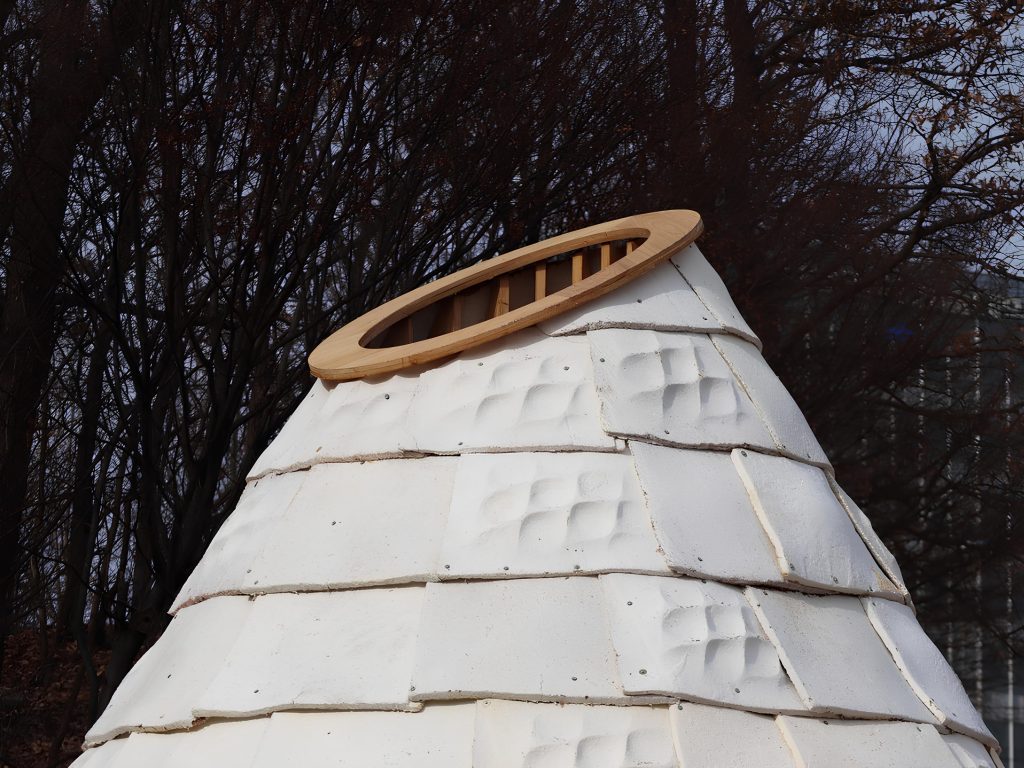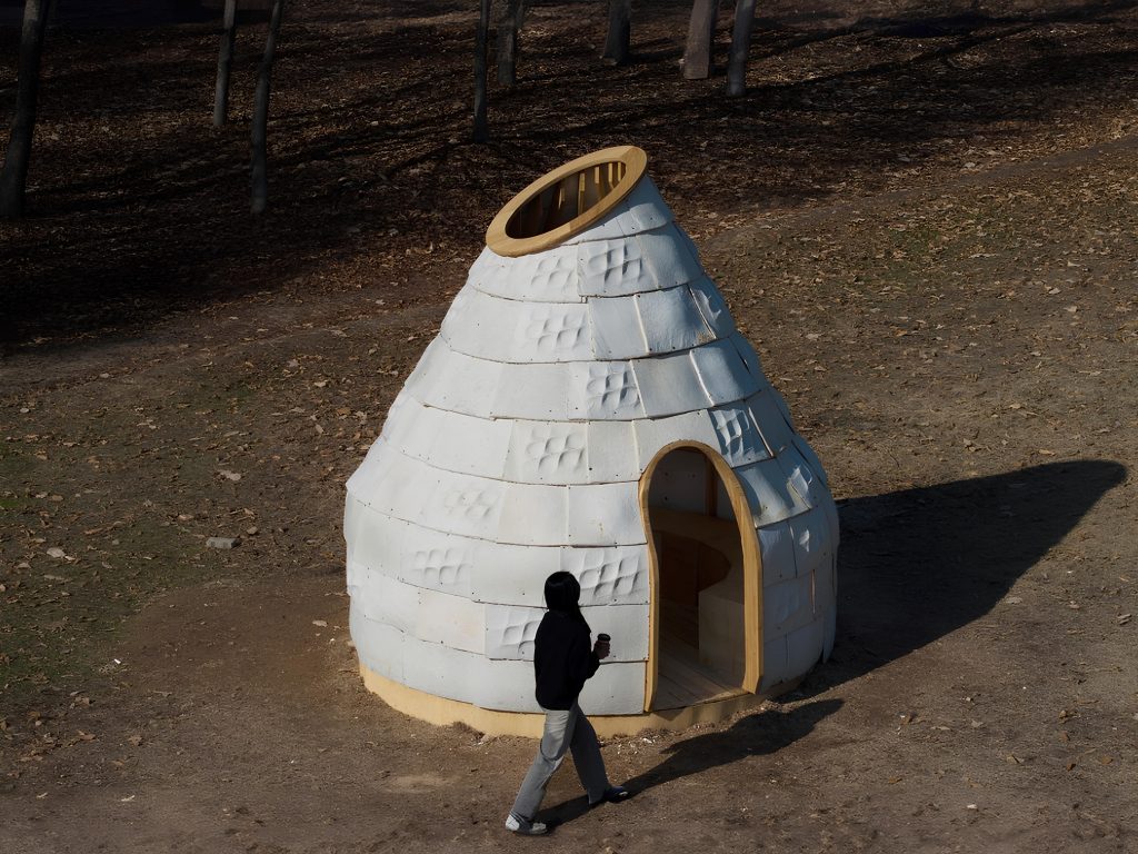 Архитектурная компания Yong Ju Lee представила инновационную «Мицелиальную хижину» — экспериментальный проект, созданный в кампусе Сеульского национального университета науки и технологий.