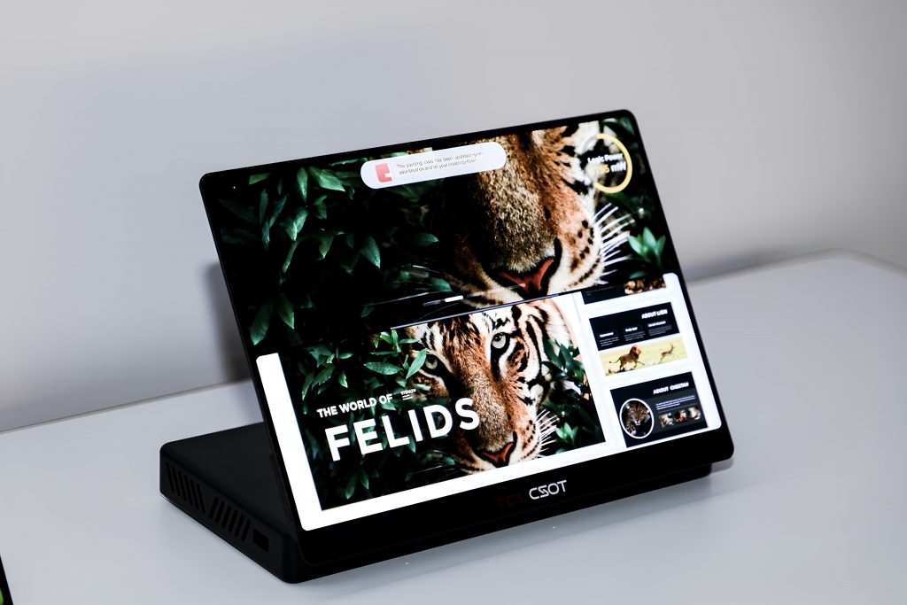 Компания продемонстрировала множество устройств-рекордсменов: крошечный 2,56-дюймовый OLED-дисплей с плотностью 1512 PPI для XR-устройств, а также ультракомпактный Micro LED размером 0,28 дюйма с разрешением 1280×720 и невероятными 5131 PPI для AR-очков. Были представлены решения для ноутбуков и геймеров, включая 16-дюймовый OLED-экран с частотой 240 Гц и 57-дюймовую MLED-панель 8K, работающую на частоте 1000 Гц. Для планшетов показали 13,2-дюймовый OLED-дисплей с разделёнными зонами обновления и динамическим диапазоном частот от 1 до 120 Гц.