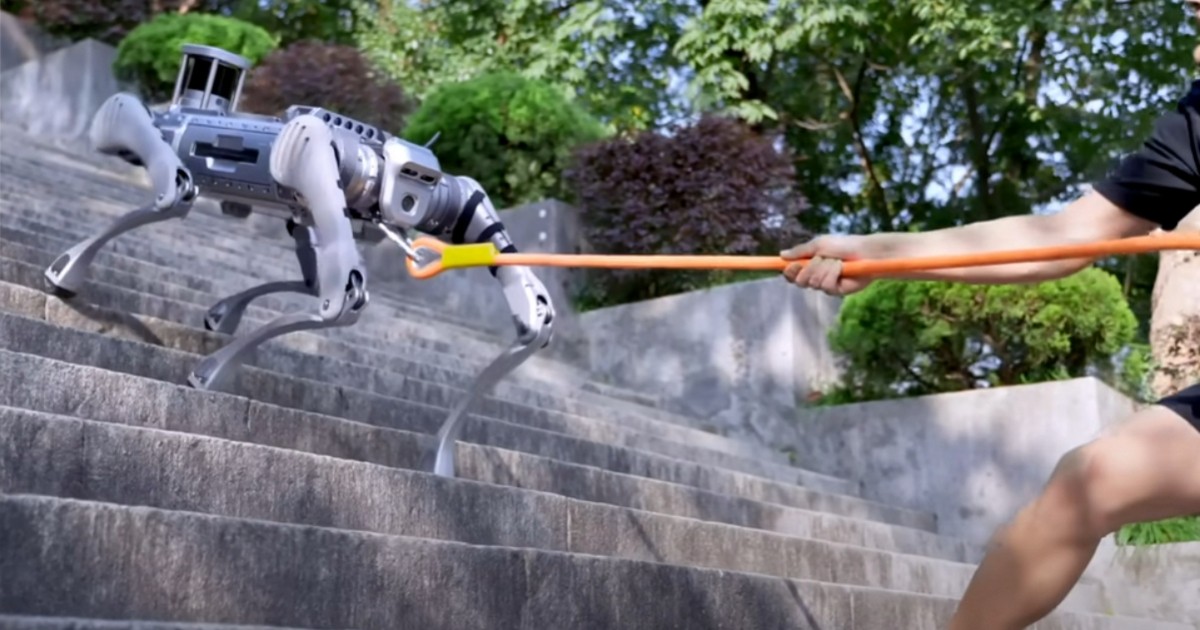 Машина с легкостью преодолевает лестницы и не падает, даже если ее сильно потянуть.