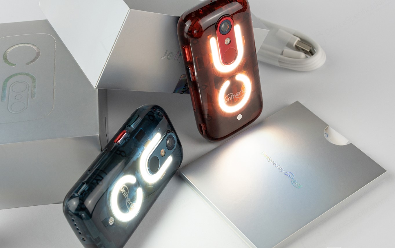 Аппарат выполнен в стиле нашумевшего Nothing Phone с прозрачным корпусом и светодиодными лентами.