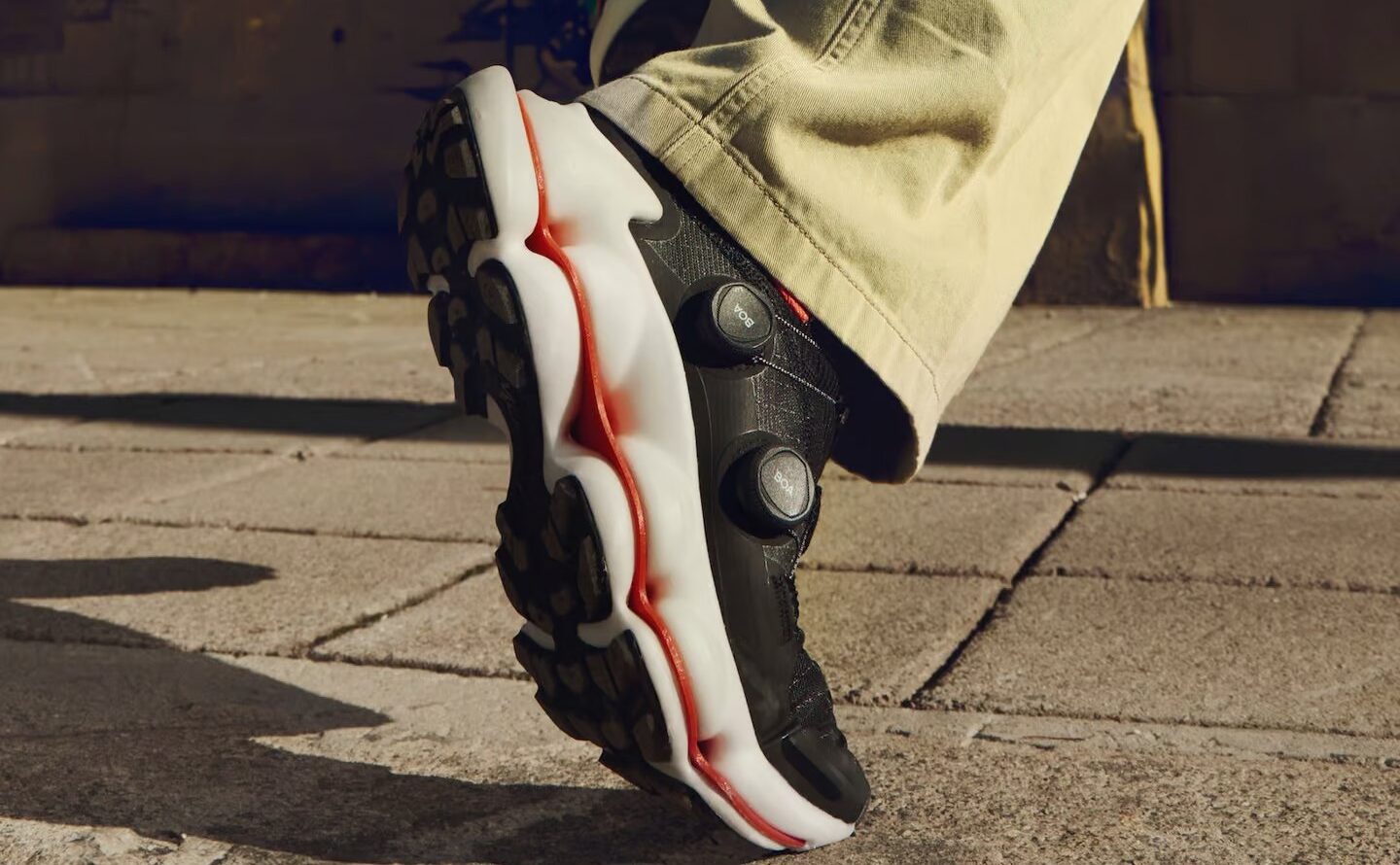 При создании обуви команда дизайнеров вдохновилась системой амортизации автомобилей с высоким клиренсом.